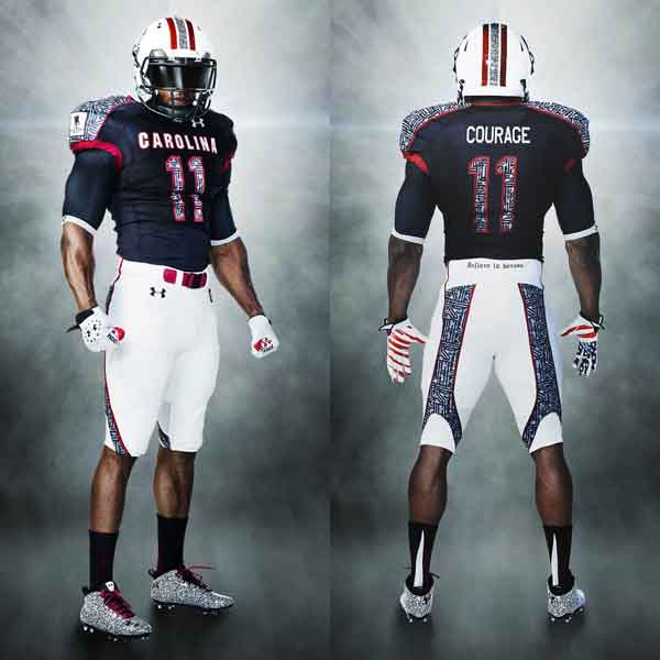 Regardless, our nonexistent sources within the football program tell us that other, more esoteric, uniform options were considered before UA and the AD settled on the Wounded Warriors. As a benefit to you, our loyal readers, we share ten of the other potential Gamecock Unis, with pros and cons for each: