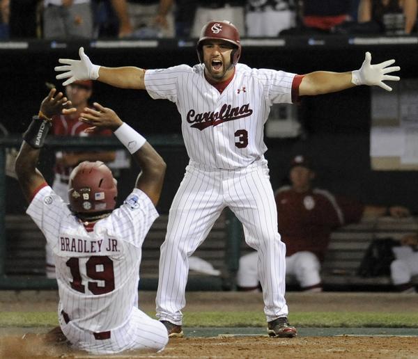 On a sunny, lazy Tuesday afternoon in Omaha, South Carolina decided early on against top-ranked and top-seeded Arizona State that it wasn’t interested in going home yet. Jackie Bradley and Adrian Morales each homered in an 8-run second inning, and Sam Dyson’s pitched 7 1/3 innings of stellar baseball in the Gamecocks 11-4 elimination game victory.