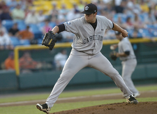Blake Cooper was masterful in the opening game of the championship series. (Photo: dailybruin.com)In honor of the 5-year anniversary of South Carolina’s 2010 baseball National Championship, TRC is briefly recapping each game of the magical postseason run. Today, the Gamecocks move within a game of the title with a 7-1 thrashing of UCLA.
