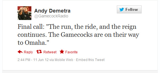 Statistics Central. After whining incessantly for about 18 hours on Twitter about the circumstances surrounding the suspension of Sunday’s game against Oklahoma, David Cloninger of Gamecock Central hit us with a couple of interesting statistics about USC’s return to Omaha: