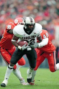 – Busting off a long run near the end of the hurricane game against NC State in Lou Holtz’ first game as Gamecock coach. A long run that gave us hope for the future and made us all say, “this guy’s got a chance”.